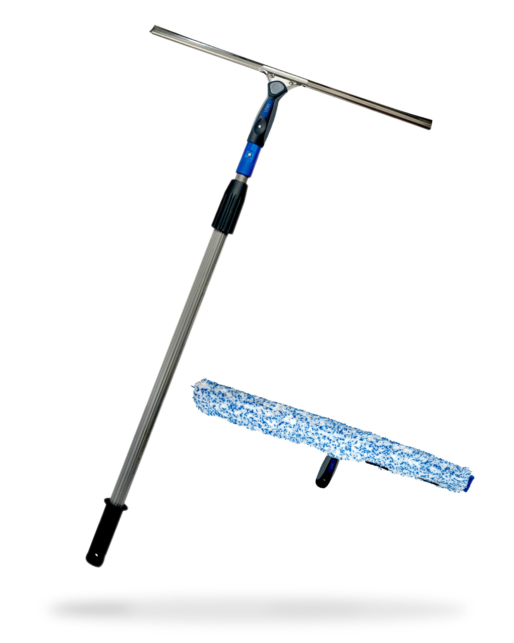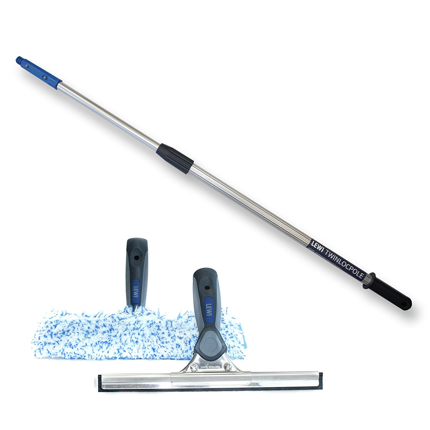 - Fensterreinigungs-Set – Die mehrteilige Teleskopstange aus rostfreiem Aluminium (330g) ermöglicht in Kombination mit Wischer und Abzieher auch das erfolgreiche Putzen von schwer zugänglichen Bereichen